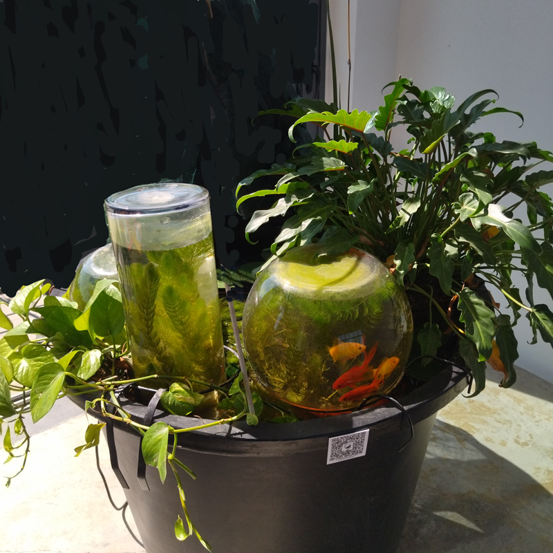 - QR code linking to real-time tank metrics (pH, O₂ levels)